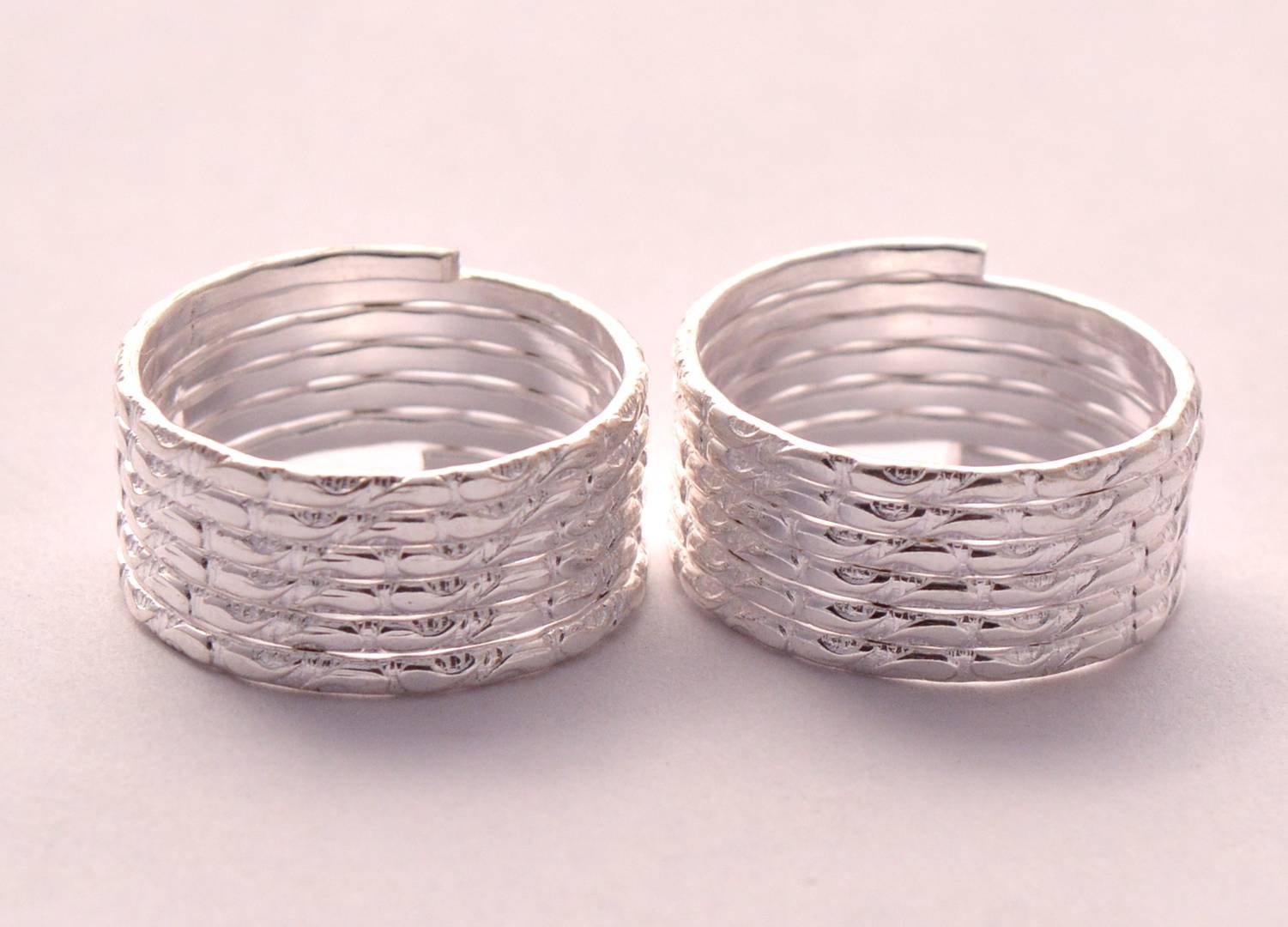 A Silver plated limited edition designer of Ethnic 1 toe rings set , this is handcrafted work with elegant Filigree rasrawa work. Adjustable band, fits easily into any toe finger. Excellent top quality finish, with a stunning design. It combines, traditional with modern look. Pair these with silver plated anklets from Memoir, and flaunt these elegant foot jewellery ornaments. They match well with all Indian and western dressess, and can be worn on all occasion. An all season wear. This also makes an excellent gifting option, for all age groups.