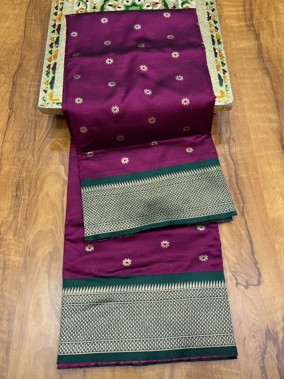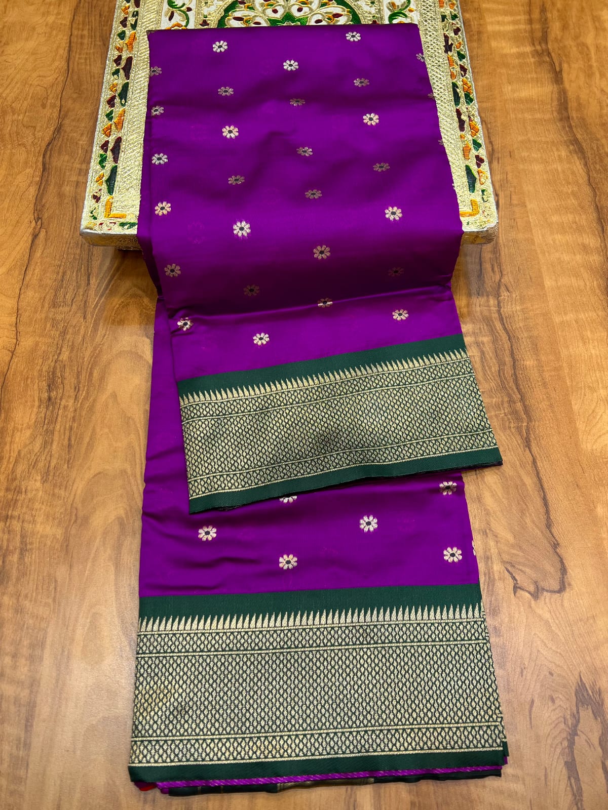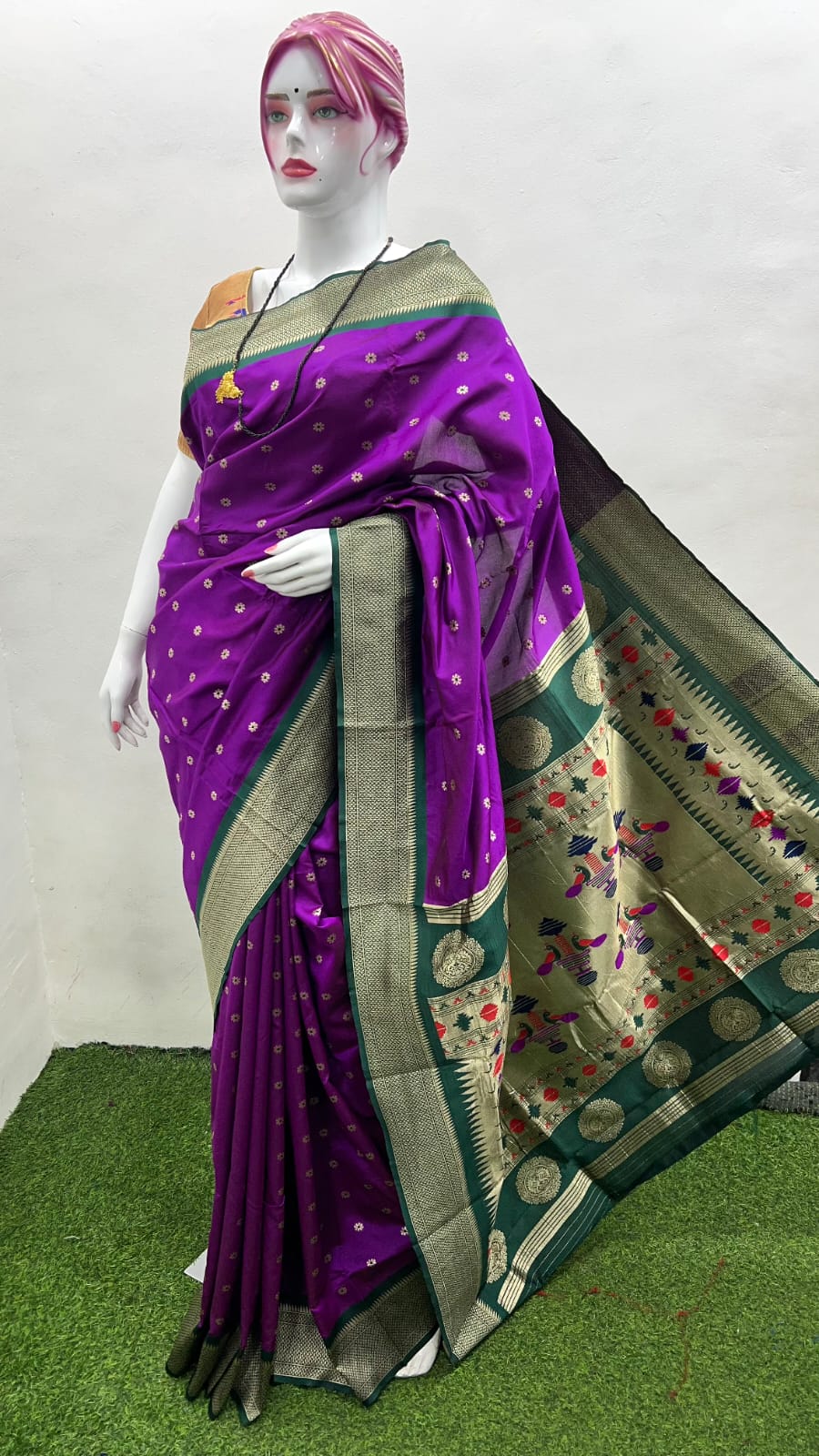 Traditional Kadiyal Paithani Saree, Pallu Meena Butti with Contrast Running Blouse.