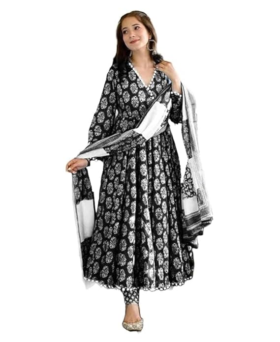 UK Textiles Rayon Angrakha Pattern Anarkali Kurti Pant and Dupatta Set for Women & Girls