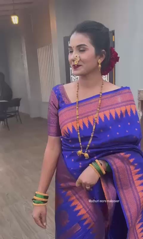 Women's Unique Kalanjali Maharani Paithani in Silk All Over Butti Rich Pallu with Running Blouse